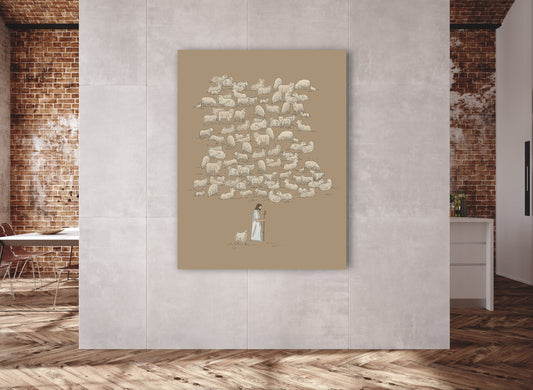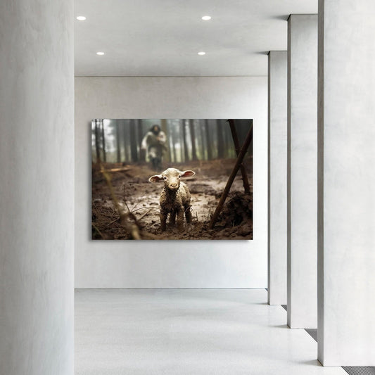 Jesus Running After the Lost Lamb - Canvas Wall Art